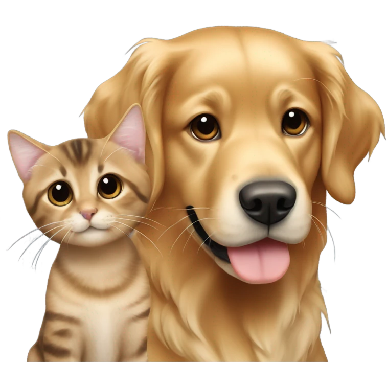 Golden retriever and smaller dark brown tabby cat emoji | AI Emoji Generator