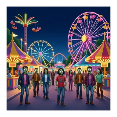 Amusement park lit up at night with zombies emoji