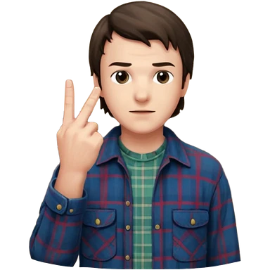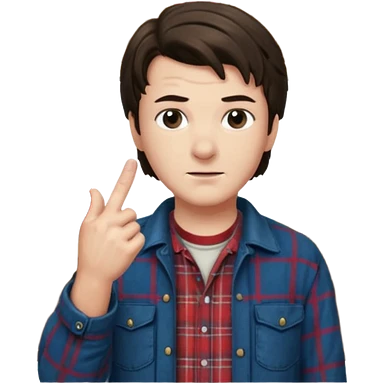Derek from stranger things pointing the middle finger in the barn emoji