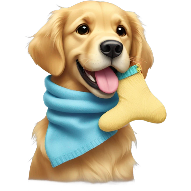 Golden Retriever with a sock in her mouth emoji | AI Emoji Generator