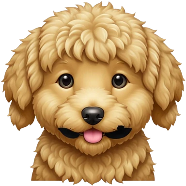 goldendoodle puppy cozy in a sherpa blanket, kawaii disney-style cute emoji