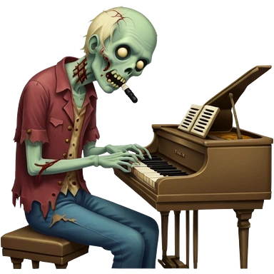 Zombie saxophonist – bent saxophone, puffed cheeks, eerie jazz vibe. emoji