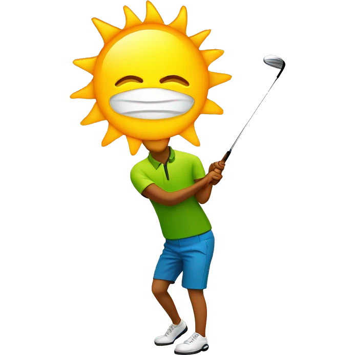 Golfer jumping up in the air with a golf club in hand on the putting green with the flag in the hole emoji