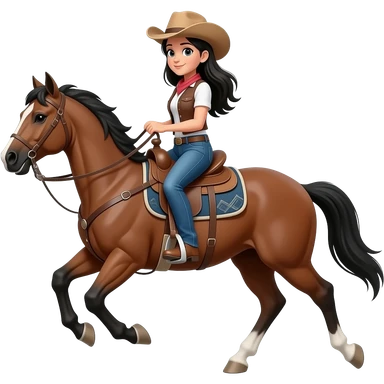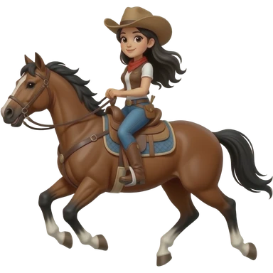 Black haired cowgirl galloping on a horse emoji