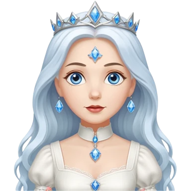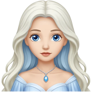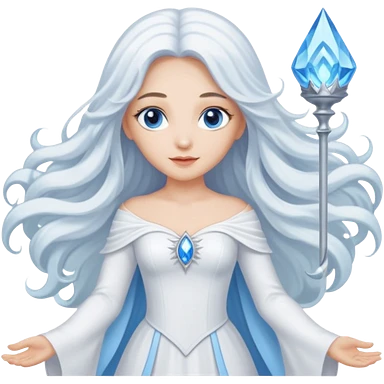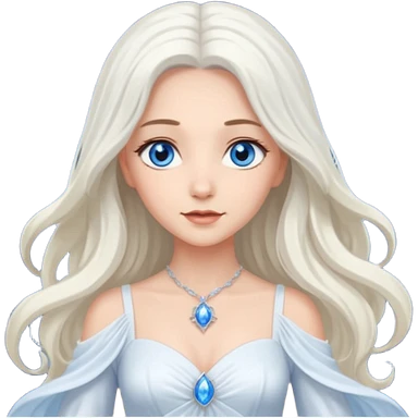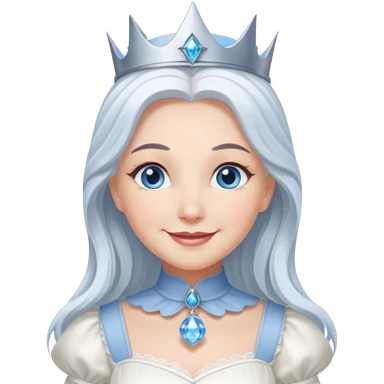 Good Witch of the North from the Wizard of Oz with long white hair, blue eyes, white outfit emoji
