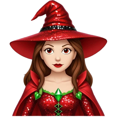Wicked Witch of the East from the Wizard of Oz with long brown hair, red sequin outfit emoji