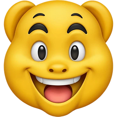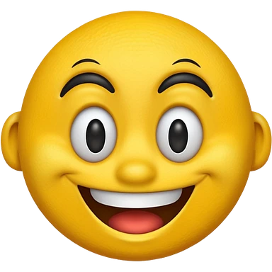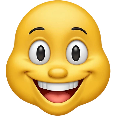 smiley face with wide, slightly off-center eyes, goofy asymmetrical smile, buck teeth, playful and clumsy personality emoji