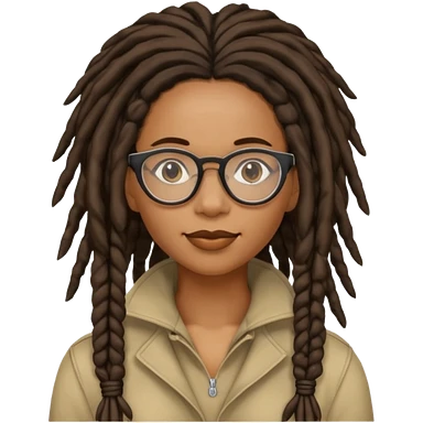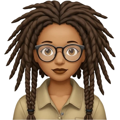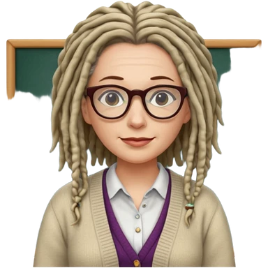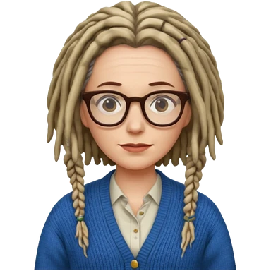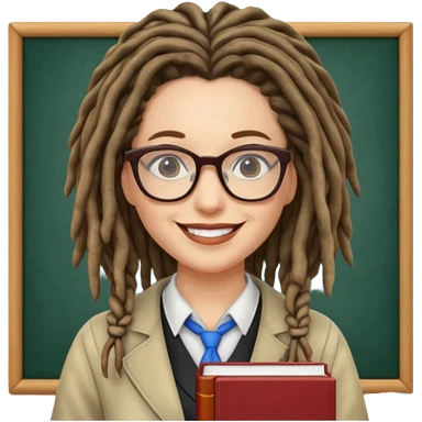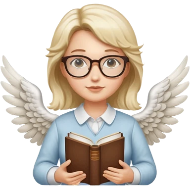 Google search character with librarian hairstyle and glasses, surrounded by books, apple emoji style emoji | AI Emoji Generator
