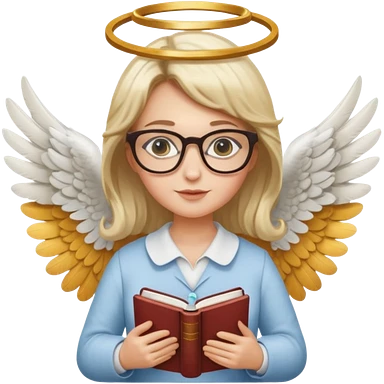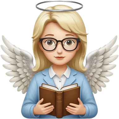 Google search character as a librarian emoji with glasses, kind expression, book and library details, apple emoji style emoji