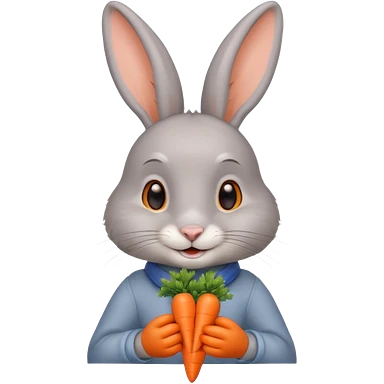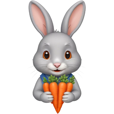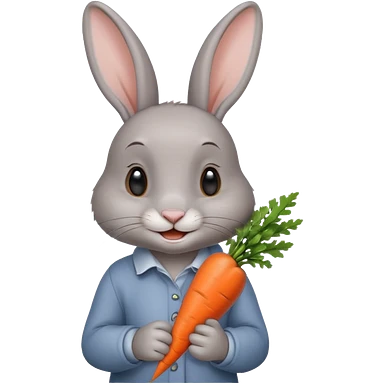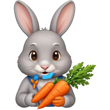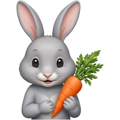 Gray rabbit holding carrot, cute smile, half body emoji