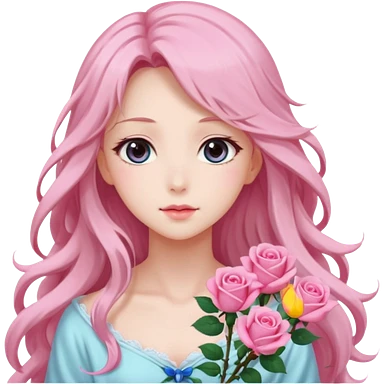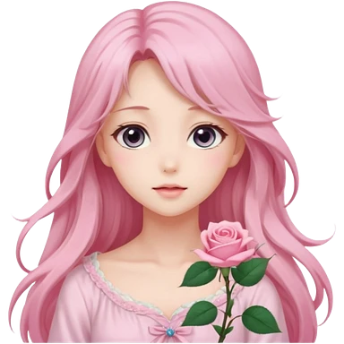 Gorgeous dreamy anime lady pink roses with long hair emoji