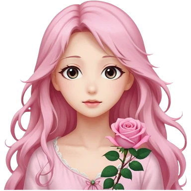 Gorgeous dreamy pastel pink anime lady roses with long hair emoji
