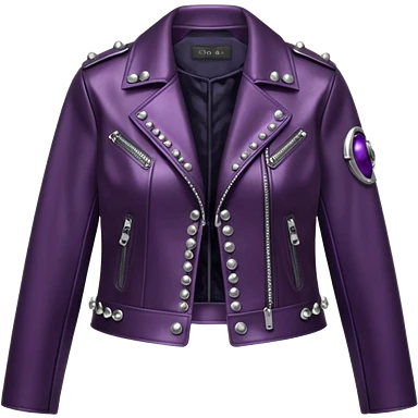 Dolce and gabanna brand Cropped midnight plum color leather detailed jacket for women with silver metallic chrome, gothic edgy style embellishments. 8k, 5000x5000px, 3D rendering, realistic, isolated still life, no emoji faces no emoji icons no human figures emoji