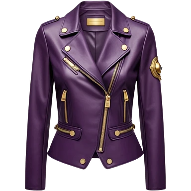 Dolce and gabanna brand Cropped midnight plum color leather detailed jacket for women with 10k gold and metallic chrome edgy style embellishments. 8k, 5000x5000px, 3D rendering, realistic, isolated still life, no emoji faces no emoji icons no human figures emoji