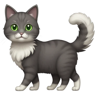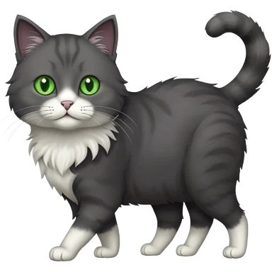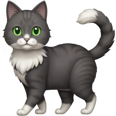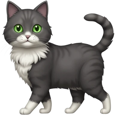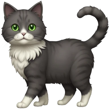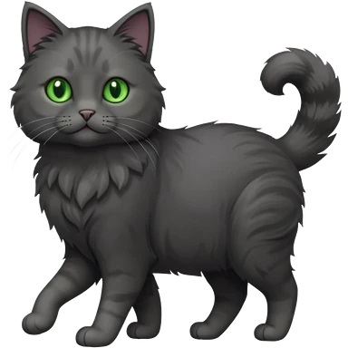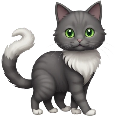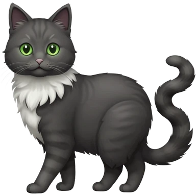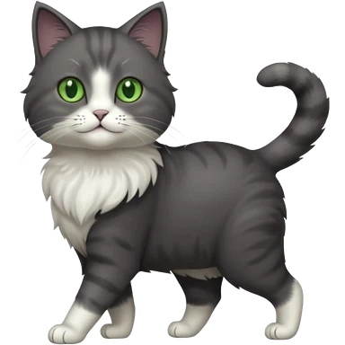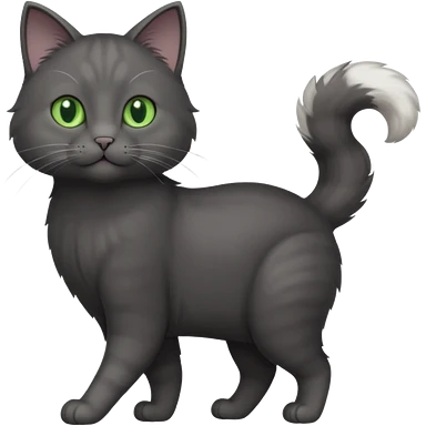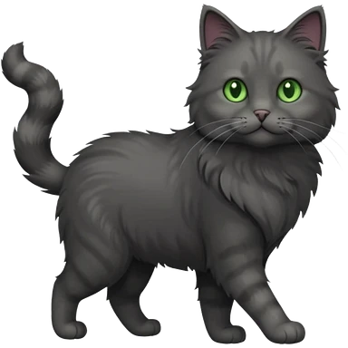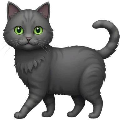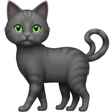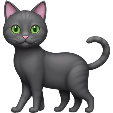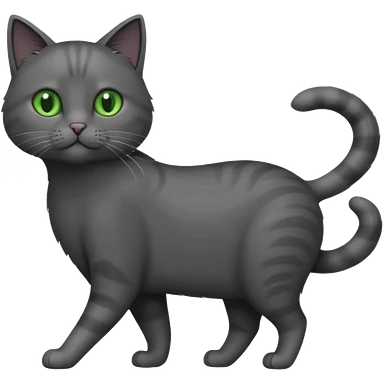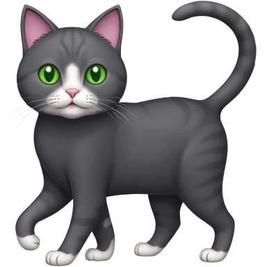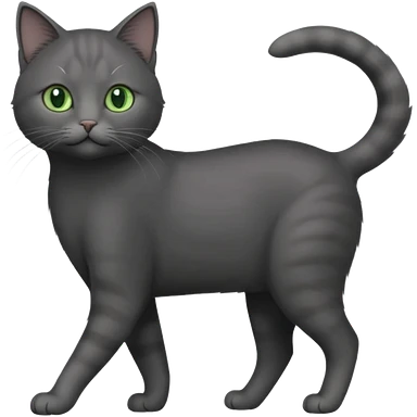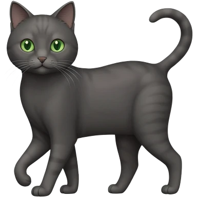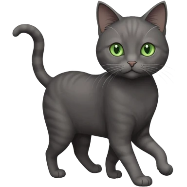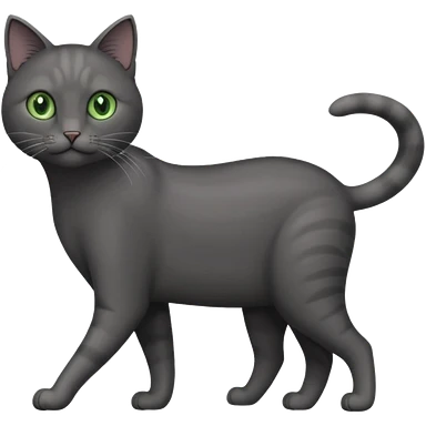 full body gorgeous solid dark grey cat with green eyes, white paws and white whiskers walking emoji