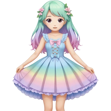 gorgeous pretty attractive anime lady beautiful pastel-gradient hair with gorgeous dress fairycore cottagecore pastelcore detailed high quality trending VOGUE aesthetic full body emoji