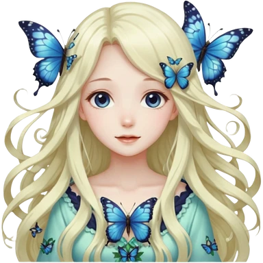 gorgeous shiny anime lady with butterflies and beautiful hair fairycore cottagecore high quality detailed emoji