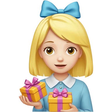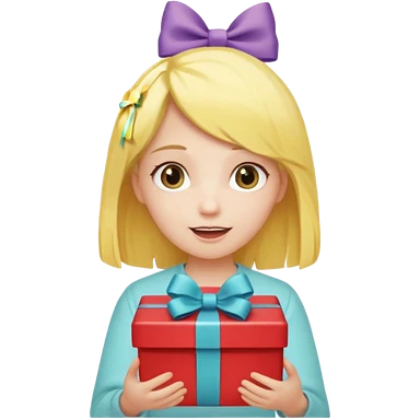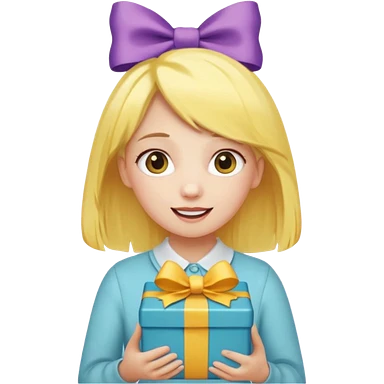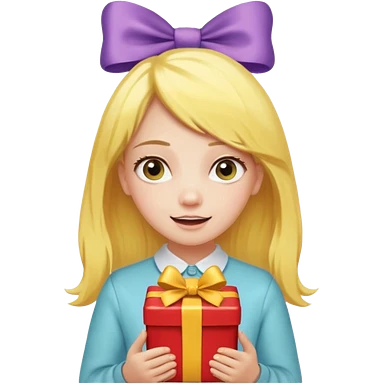 🥳🎀 sarı saçlı kız p saçının üstünde toka var tokat atmış iyi ki doğdun teyzeciğim diyor hem hediye var elimde çok kafasına tokat atmış emoji