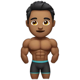 Emblem-style emoji of a bodybuilder in a classic bodybuilding pose, showcasing muscles and strength. The figure resembles a muscular athlete like Dwayne Johnson, with a focus on physique, confidence, and power. Bold lines, dynamic stance, and transparent background. emoji