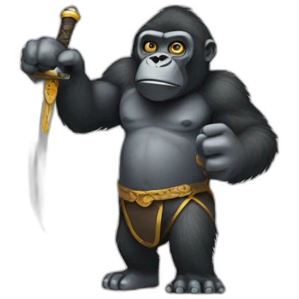 Gorilla holding a pistol wearing gold chain and watch , black shirt and a yellow bandana emoji