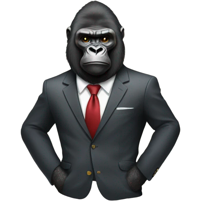 gorilla in paddington bear's blueclothes and red hat, full body musular emoji