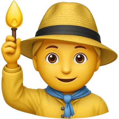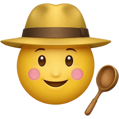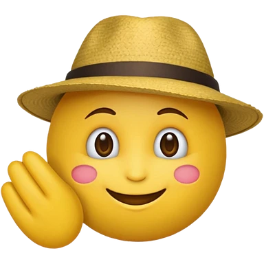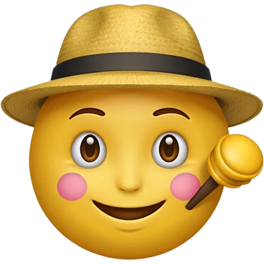 Un emoji rond jaune qui sourit avec un capeau de poète emoji
