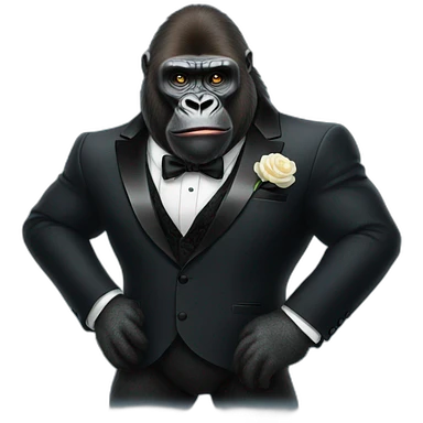 Gorilla wearing a black suit and gold watch emoji | AI Emoji Generator