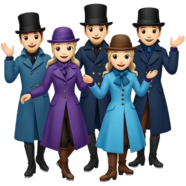group of 5 colleagues 1 with computer, 1 with a copybook emoji
