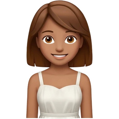 girl walking wearing a white dress, the hair color is brown emoji