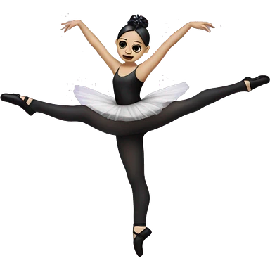 A ballerina dancing with point shoes and in a white tutu with a ribbon on her waist, she has a slick bun and a great posture emoji