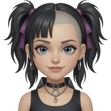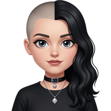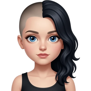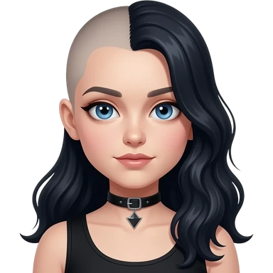 Goth girl with half of her hair shaved, the unshaved part is really long and wavy and blue eyes emoji