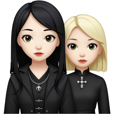 Asian girl black hair and blonde white girl dressed goth emoji