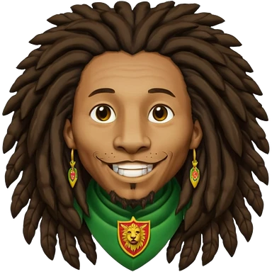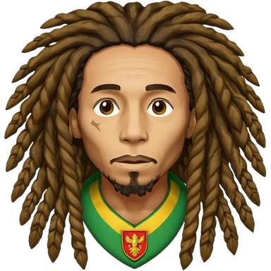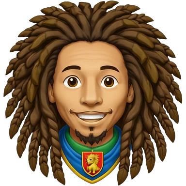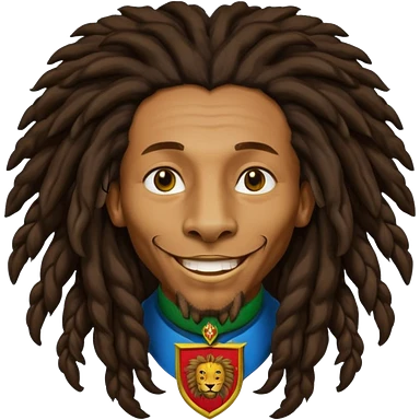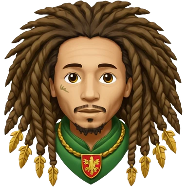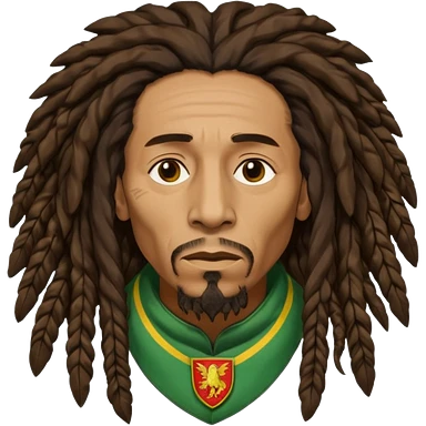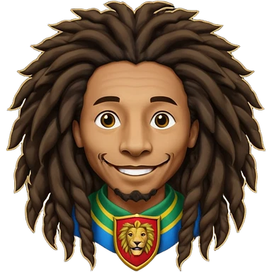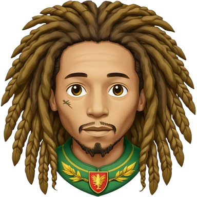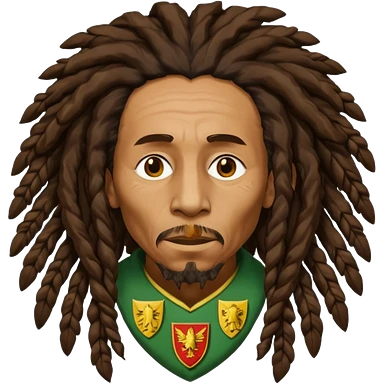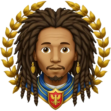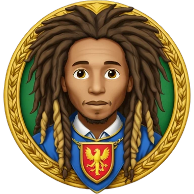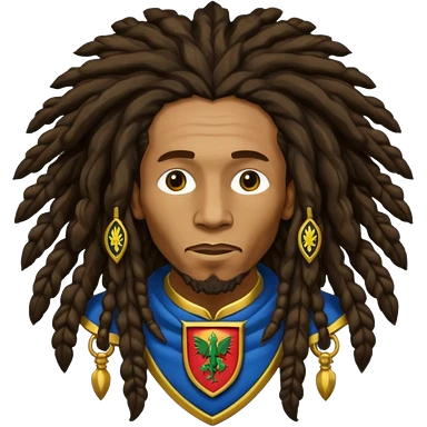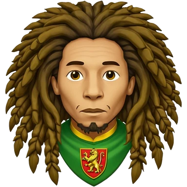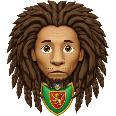 very realistic Bob Marley with gigantic dread locks heraldic crest emoji