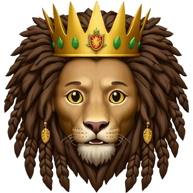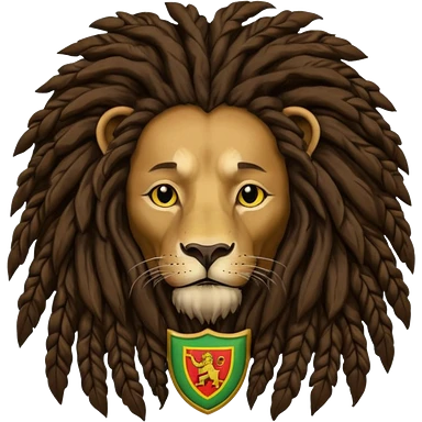 very realistic Bob Marley with gigantic dread locks in form heraldic crest with ethiopian lion emoji
