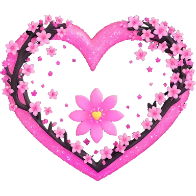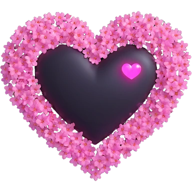 goth sakura heart, black heart with pink sakura petals, magical shimmer emoji