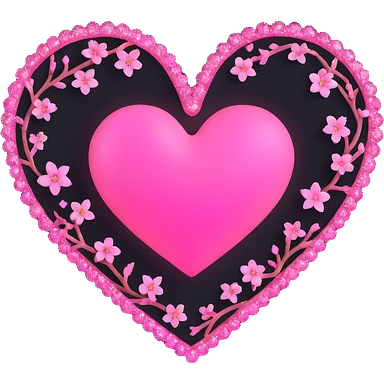 goth sakura black heart with glowing pink outline and magical sparkles emoji | AI Emoji Generator
