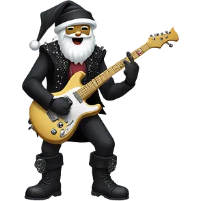 Goth Santa Claus playing the guitar. Make him angry. No black face. Lots of jewelry emoji