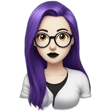 goth woman with side parted purple hair and oval glasses, pale skin emoji | AI Emoji Generator