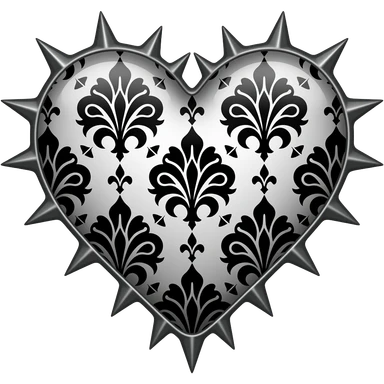 Gothic punky edgy cool spiky Heart with black damask pattern emoji