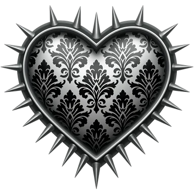 Gothic edgy cool spiky Heart with black damask pattern emoji