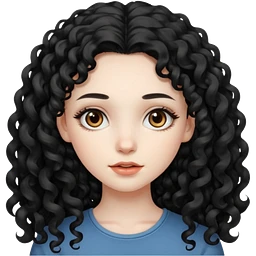 gothic girl, pale skin, blue eyes, long hair, deep dark purple hair, bangs, black clothes, eyeliner, upper lip beauty mark emoji