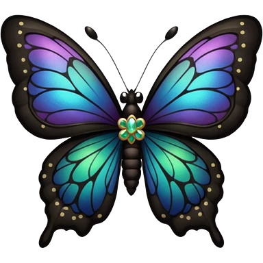 A black butterfly with intricately detailed wings, featuring a central ribbon tied in a bow, blending gothic fashion with nature’s beauty. emoji