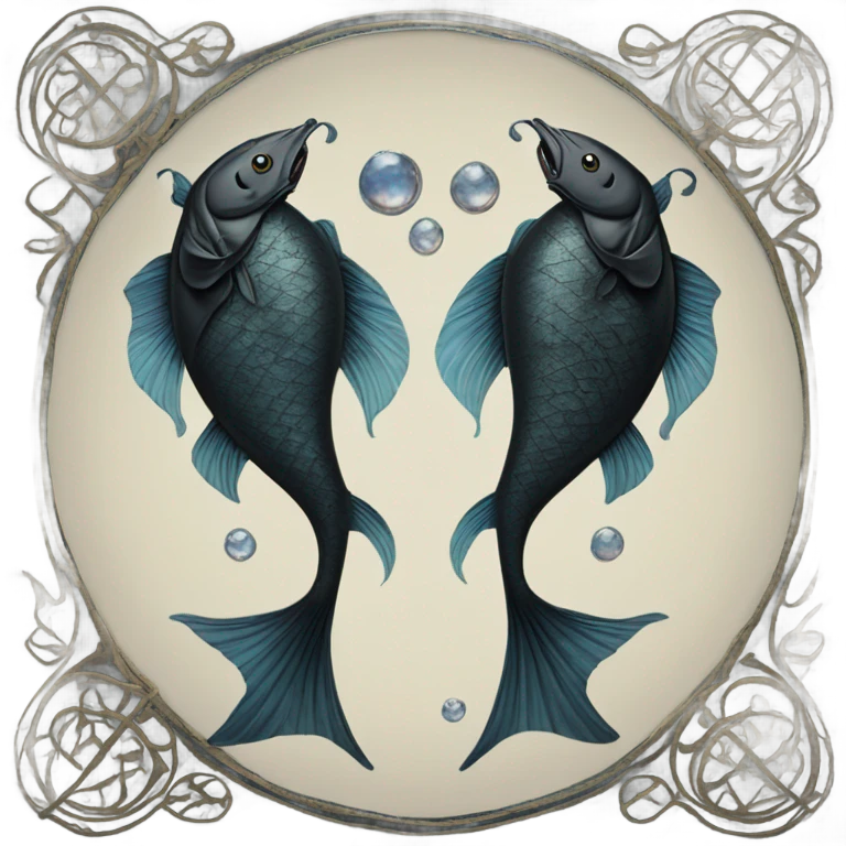 Pisces Two realistic koi fish swimming in circle ying yang cloudy dreamy emoji