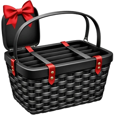 Gothic pitch-Black Picnic basket with red bow emoji | AI Emoji Generator