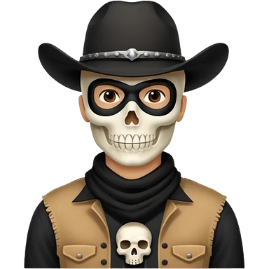 🤠+💀, colocar uma máscara preta no pescoço emoji