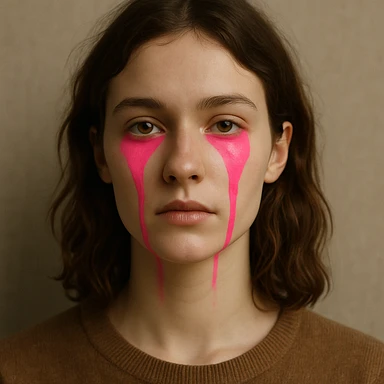 Gözlerinin altından çenesine kadar akan pembe boya efekti ekle, diğer tüm özellikler aynı kalsın