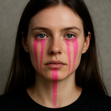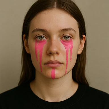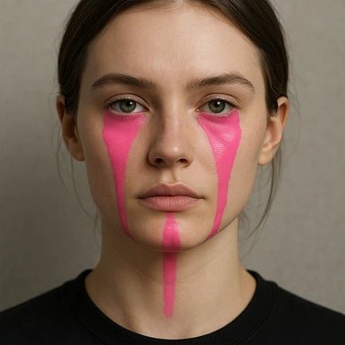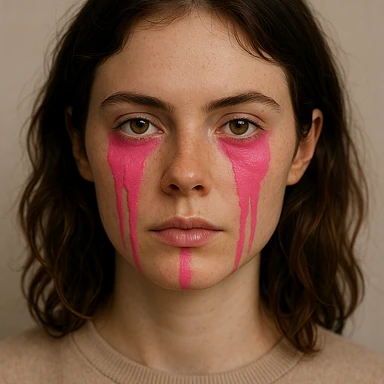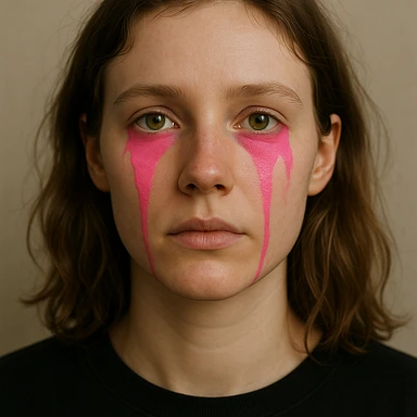 Gözlerinin altından çenesine kadar akan pembe boya efekti ekle, diğer tüm özellikler aynı kalsın image | AI Emoji Generator