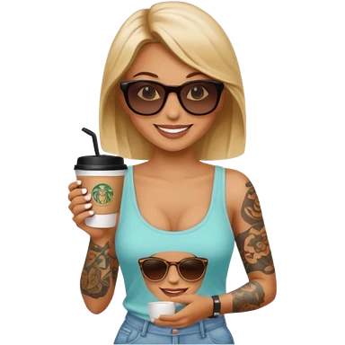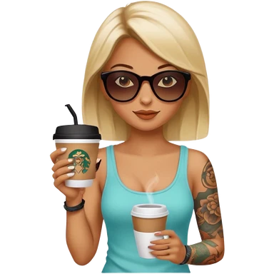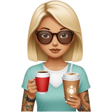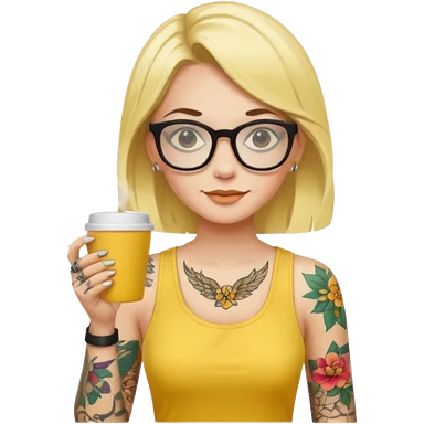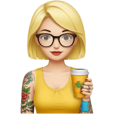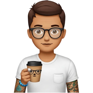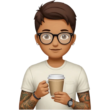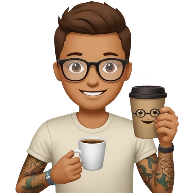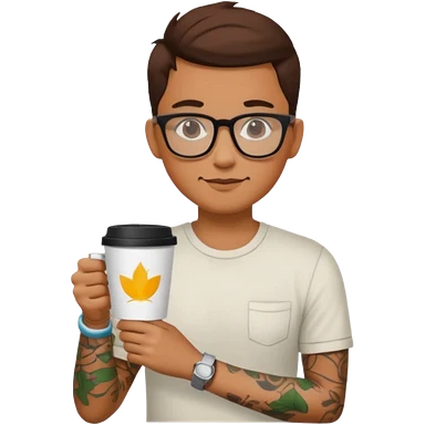 gözlük takan, dövmeli ve elinde kahve tutan, yaz kıyafetli insan. emoji | AI Emoji Generator
