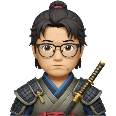 uzun kahverengi saçlı siyah gözlüklü saçı bağlı adam emoji
