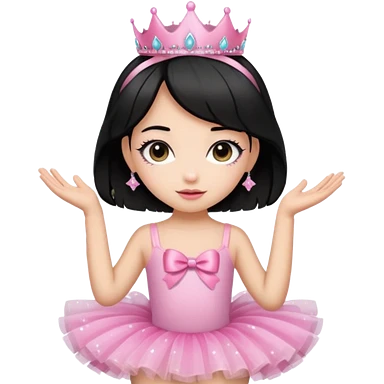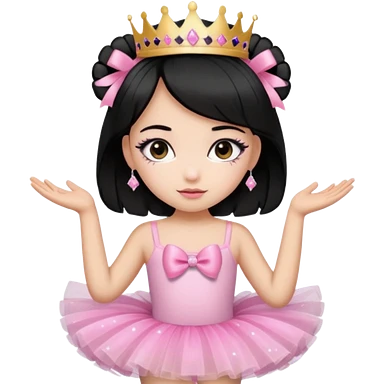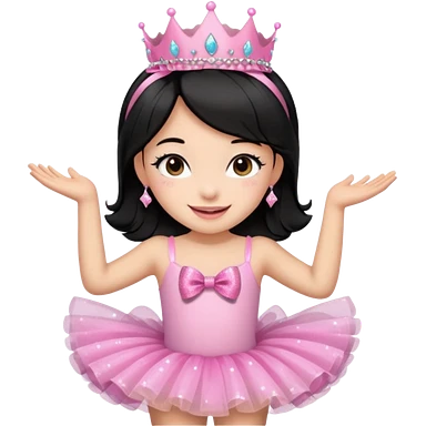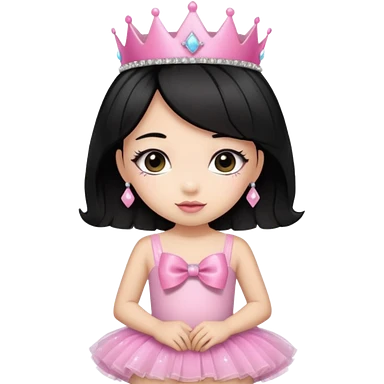 cute girl wearing a tutu, tiara, and a pink glittery bow with black hair emoji